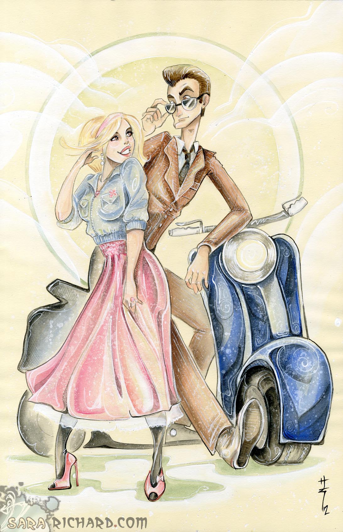 If you are a fan of the Tenth Doctor (and what rational person isn’t), you can choose the print Sara made, inspired by “Idiot’s Lantern”. The Doctor and Rose with a motor scooter? **swoon**